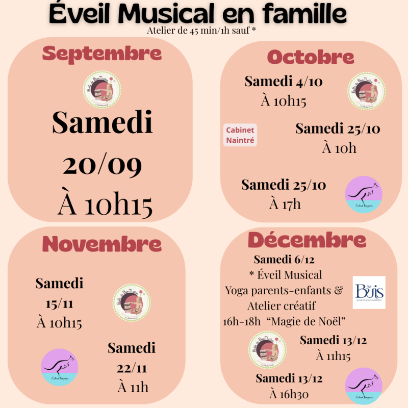 "Un rendez-vous de complicité, de joie, et de découverte autour de la musique. Plaisir, éveil des sens, et épanouissement enfant-parent "